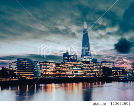 ロンドン ザ・シャードとテムズ川沿いの町並み 夕景