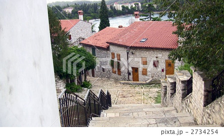 クロアチア ロヴィニの海に面した旧市街の街並み