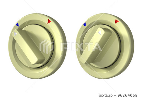 回転式スイッチのクローズアップ。オンとオフの一組。シンプルなスイッチ。白背景。