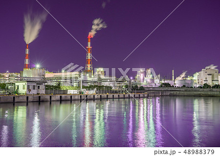 瀬戸内の、カネカ工場夜景(兵庫県高砂市高砂町宮前町)作品コメント欄に撮影位置