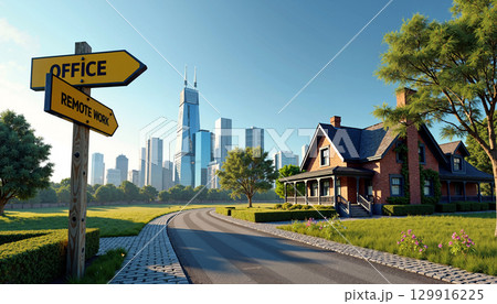 A vibrant city scene featuring modern architecture, clear skies, and lush greenery along the streets, showcasing a harmonious blend of nature and urban living.