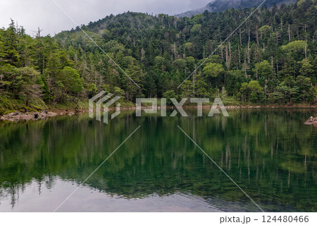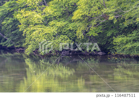 夏の蔦沼 早朝の蔦沼展望台からの風景 青森県十和田市