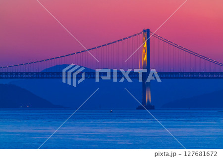 《香川県》瀬戸大橋と大海原の夕景