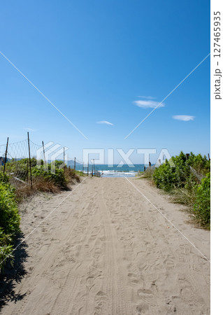 由比ガ浜海水浴場の海へ続く道