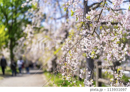 春の桜並木 日中線のしだれ桜 福島県喜多方市