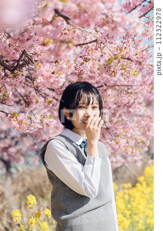 桜と女子高生