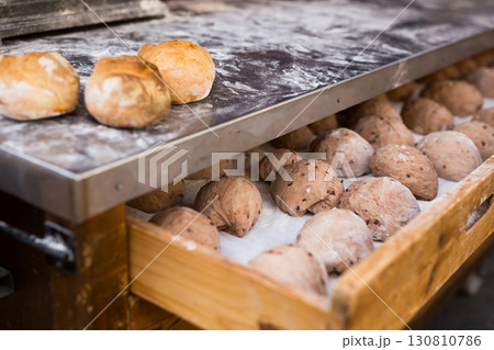 ready made rolls of freshly baked grain bread in drawer