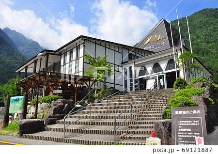 新穂高ロープウェイ 新穂高温泉駅と緑豊かな山並み