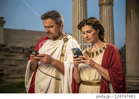 スマートフォンをいじる古代ローマの男女