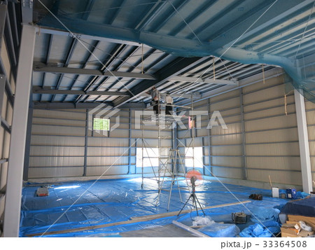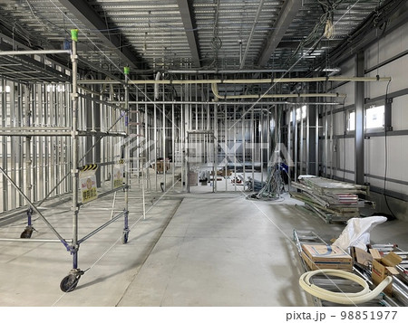 鉄骨の建物の工事中の内部