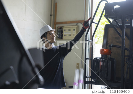 トラックで作業する作業員