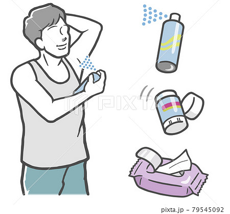 スティック状の制汗剤を塗る男性のイラスト