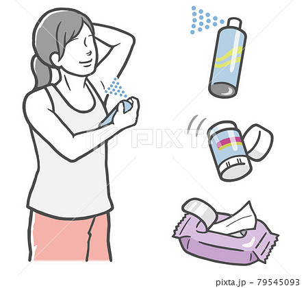 脇に制汗剤を塗る女性 臭いや汗対策 手書き風