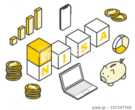 新NISAのロゴのアイソメアイコンのベクターイラスト素材/マネー/ファンド