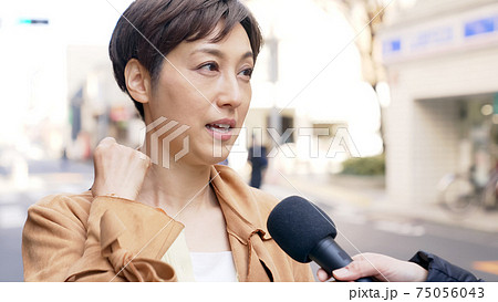 街頭インタビューを受ける女性