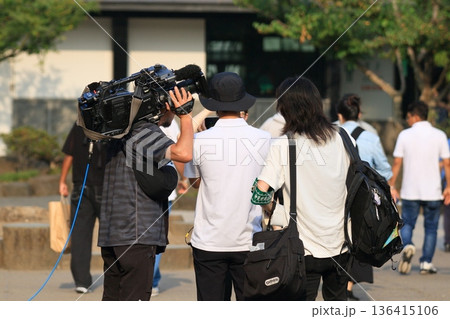 街頭で取材するテレビクルー 観光地の街頭インタビュー