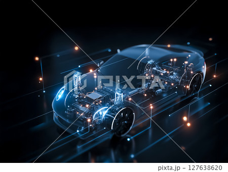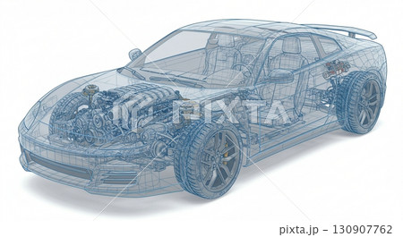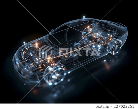 EV自動車のワイヤーフレームのCG画像