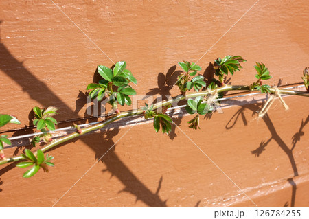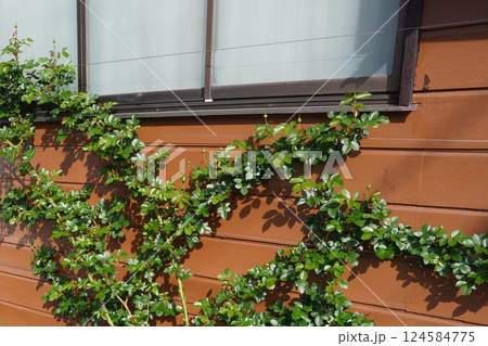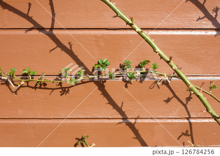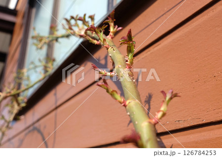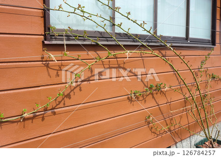 つるバラの芽吹(木造住宅の壁)01