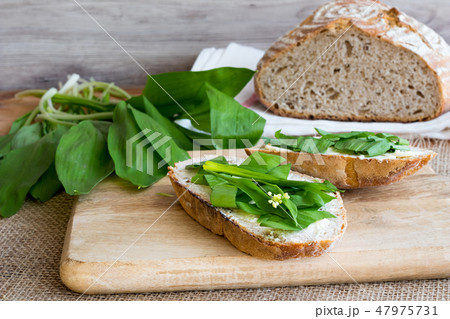 Sourdough bread with butter and wild garlic