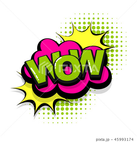 Comic style text, WOW sound effect, speech bubble,