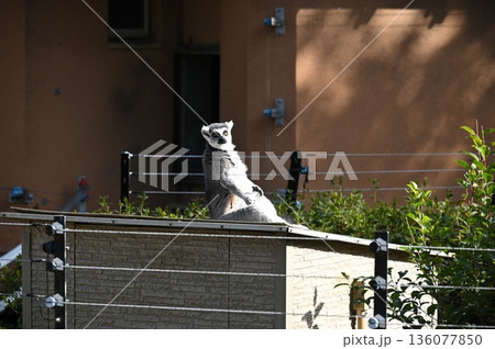 横を向き叫ぶワオキツネザルのいる動物園の風景