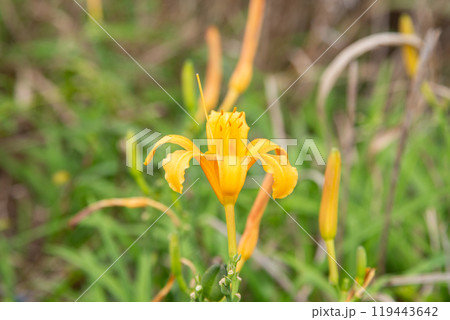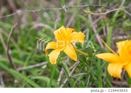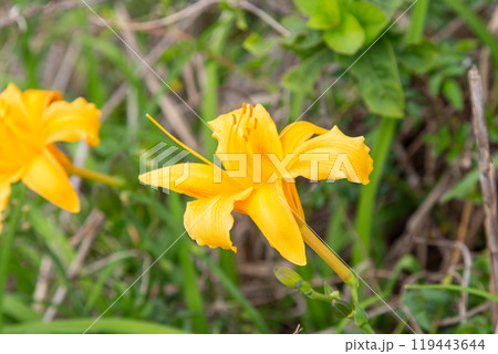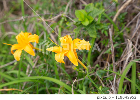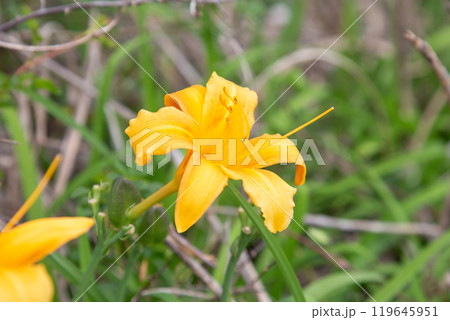ユウスゲの黄色い花が咲いています。学名はHemerocallis thunbergii