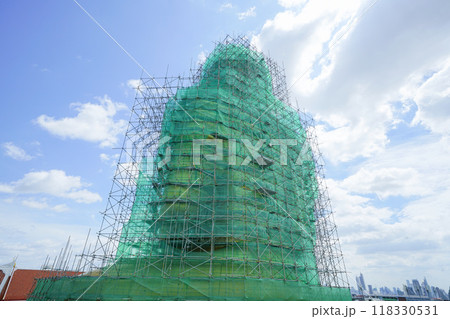 修繕中のタイ・バンコクの寺院「ワット・パクナム」の巨大仏像