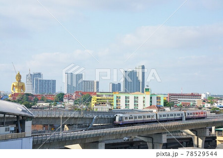 MRTブルーラインのバンパイ駅から見たワット・パクナムの巨大仏像