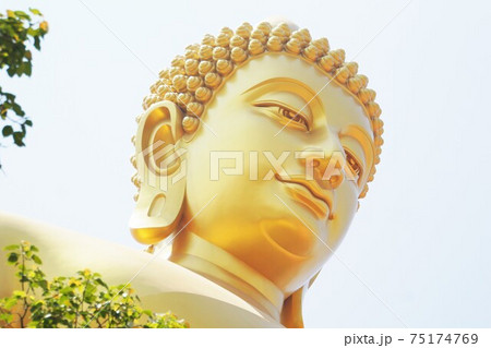 タイの寺「ワットパークナーム」の金箔が貼られた仏像