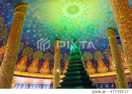 エメラルド色に輝くガラスの仏塔のあるワット・パクナム