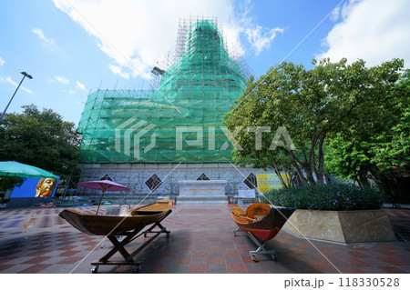 修繕中のタイ・バンコクの寺院「ワット・パクナム」の巨大仏像