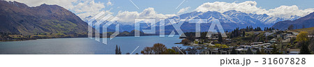 panorama view of wanaka lake town new zealand