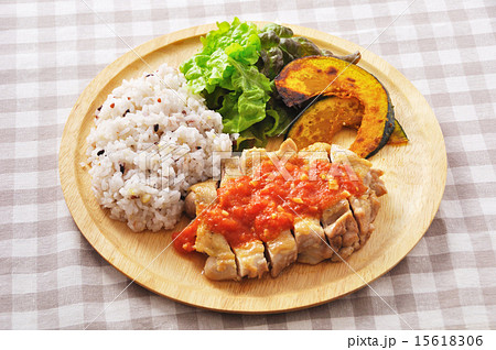 カフェご飯(チキンソテーガーリックトマトソース) レシピ付き