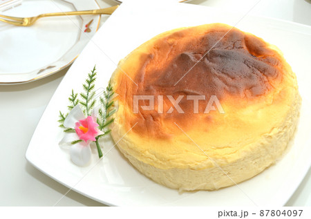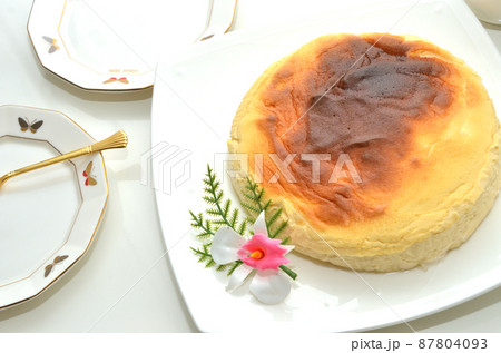 皿にのせた手作りのワンホールのヨーグルトケーキ
