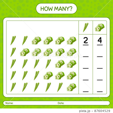 How many counting game with okra. worksheet for preschool kids, kids activity sheet, printable worksheet