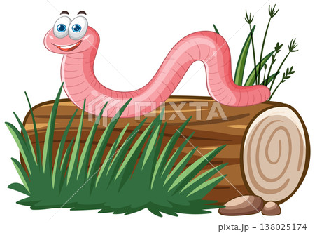 Smiling Earthworm on Log in Grassy Woodland Scene