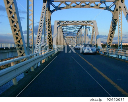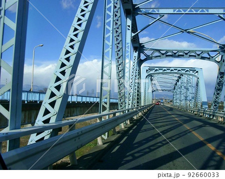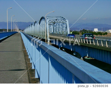 スカイブルーのトラスト橋。2018年に架け替え工事完了 撮影2011年1月8日 戦中に米軍爆撃機の