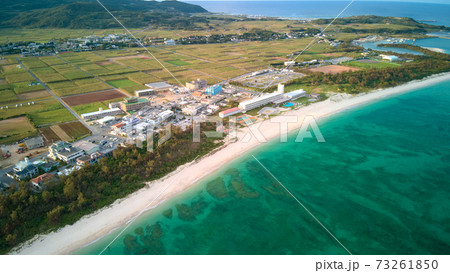 沖縄 竹富島 人気スポットの西桟橋でドローンを飛ばして楽しむ観光客