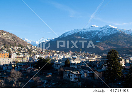 春の朝のアオスタの風景(イタリア ヴァッレ・ダオスタ州)