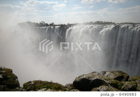 ビクトリアの滝の水煙 ジンバブエ アフリカ