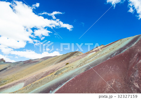 【ペルー】色鮮やかなレインボーマウンテンの山並みと青空(ビニクンカ山)