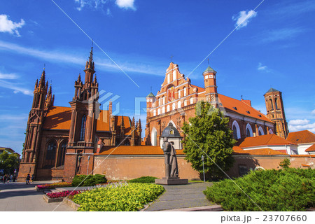 北欧バルト三国リトアニアの世界文化遺産のヴィリニュス歴史地区旧市街 聖アンナ教会とベルナルディン教会
