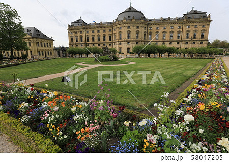 ドイツ ビュルツブルグ レジデンツとホーフ庭園に咲く花