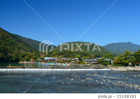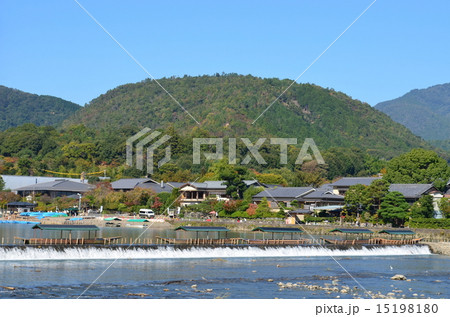 京都の観光名所の嵐山を流れる桂川の一ノ井堰
