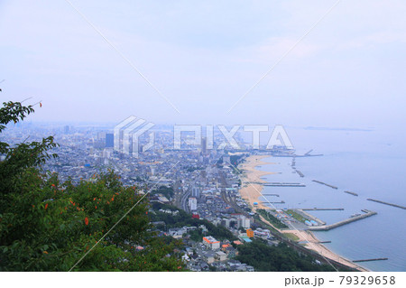 須磨浦公園・鉢伏山中腹より須磨海釣り公園と大阪湾、生駒山山系から昇る日の出/「瀬戸内海国立公園」