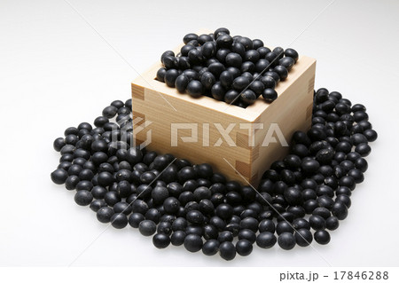 枡から溢れる節分の福豆 白背景 b-2 左寄せ やや横から