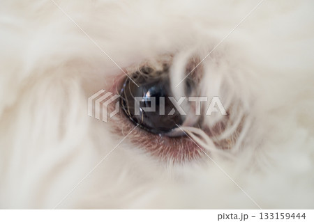 ビションフリーゼ子犬のうるうるした瞳クローズアップ