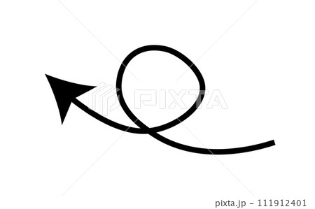 右上への一回転した上昇矢印 勢いのあるマジックの手描き風 黒色ver.