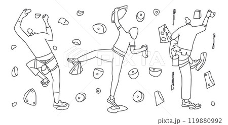 Indoor climbing activity. Climber training isolated on white background. Vector hand drawn illustration