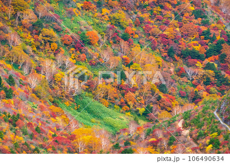 秋の群馬県みなかみ町の一ノ倉沢から谷川岳方面